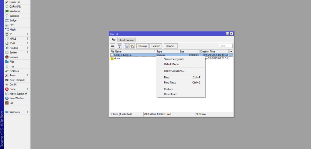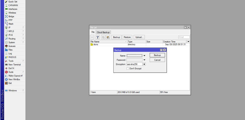 مراحل بکاپ گرفتن از روتر میکروتیک نوع backup.
